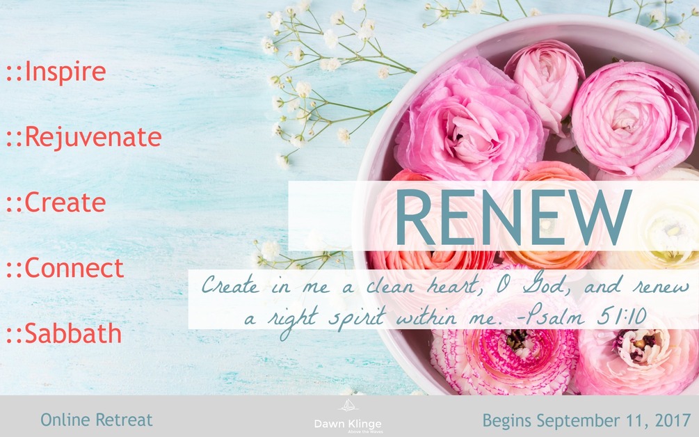 Renew is brimming with Christian faith-based inspirational encouragement and ideas that will help you turn your gaze towards the Author of peace and renewal. As our lives return to a semblance of routine after the summer months, before we enter the busy season of the winter holidays, let's take a pause, a personal retreat, and renew our minds, bodies, and spirits.